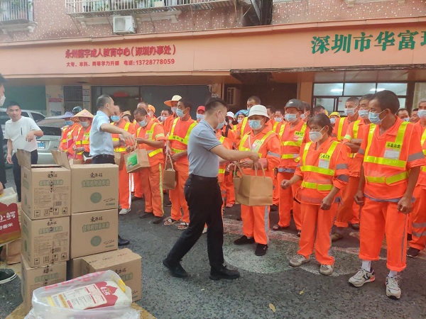 观湖街道领导慰问一线环卫工人,发放端午节物资